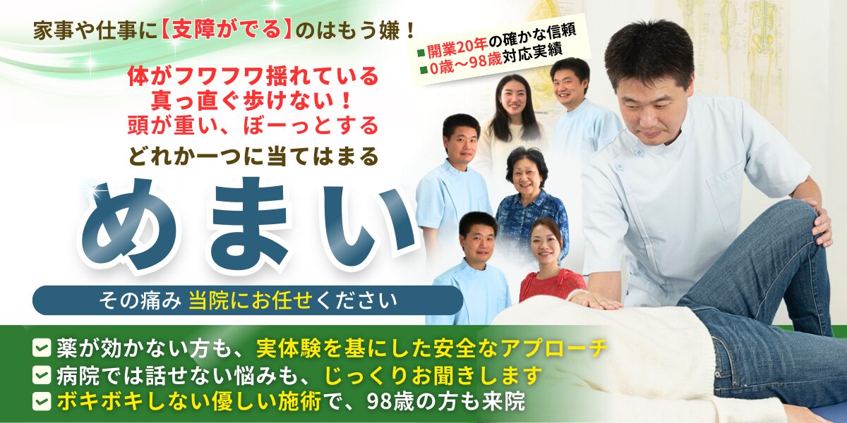 - 耳鼻科や脳外科で「異常なし」と言われたが、めまいが治まらない