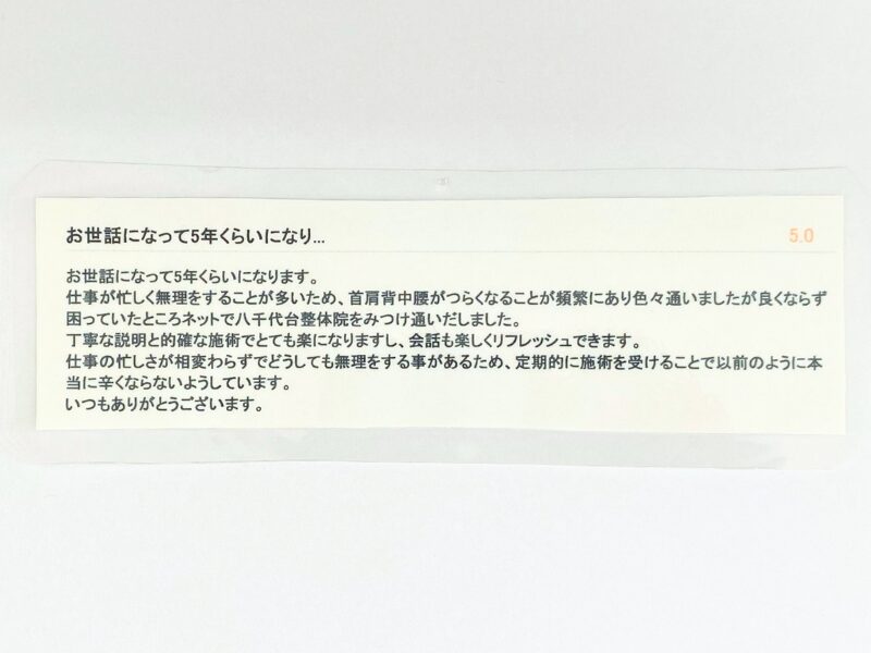 もし体の痛みや歪み、不調などでお困りの方は、ぜひ八千代台整体院に行かれることをお薦めします。